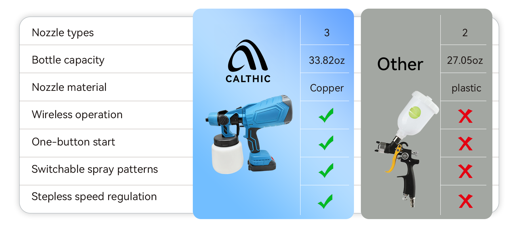 That’s how the Calthic Cordless Paint Sprayer was born. Its powerful yet user-friendly design makes spraying effortless while delivering flawless results. This reflects Calthic’s core promise: transforming tedious chores into a creative joy, so you can focus on the art of your work.